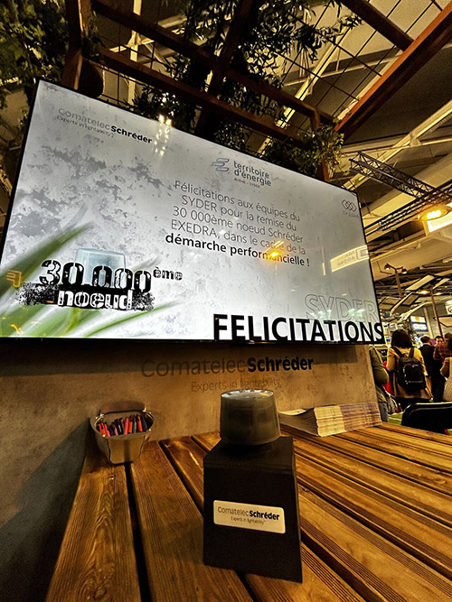 • Le SYDER-Territoire d’énergie Rhône, représenté par le président, Malik Hechaïchi, a reçu le trophée symbolique de la pose du 30 000ème nœud connecté dans le cadre de leur démarche performancielle : un système intelligent permettant la collecte automatique de données et le contrôle à distance des luminaires (extinction, abaissement de la luminosité, etc.), optimisant la consommation d’énergie et facilitant la maintenance.